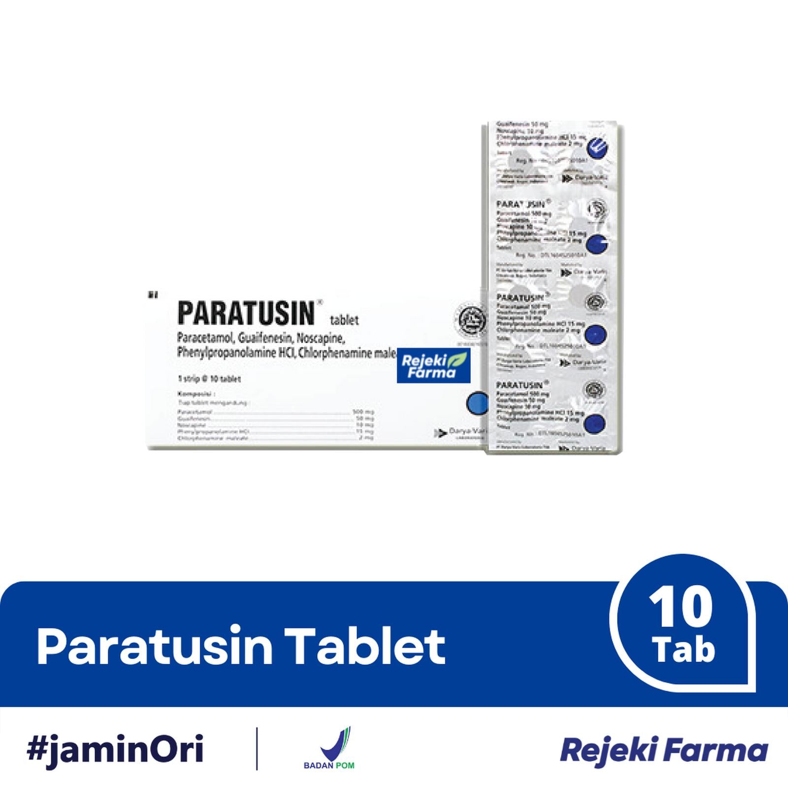 Paratusin Tablet merupakan obat untuk mMeringankan gejala-gejala flu, seperti demam, sakit kepala, hidung tersumbat, dan bersin-bersin yang disertai batuk. Obat ini juga bisa digunakan untuk mengurangi rasa sakit ringan hingga sedang, seperti sakit kepala dan nyeri otot.